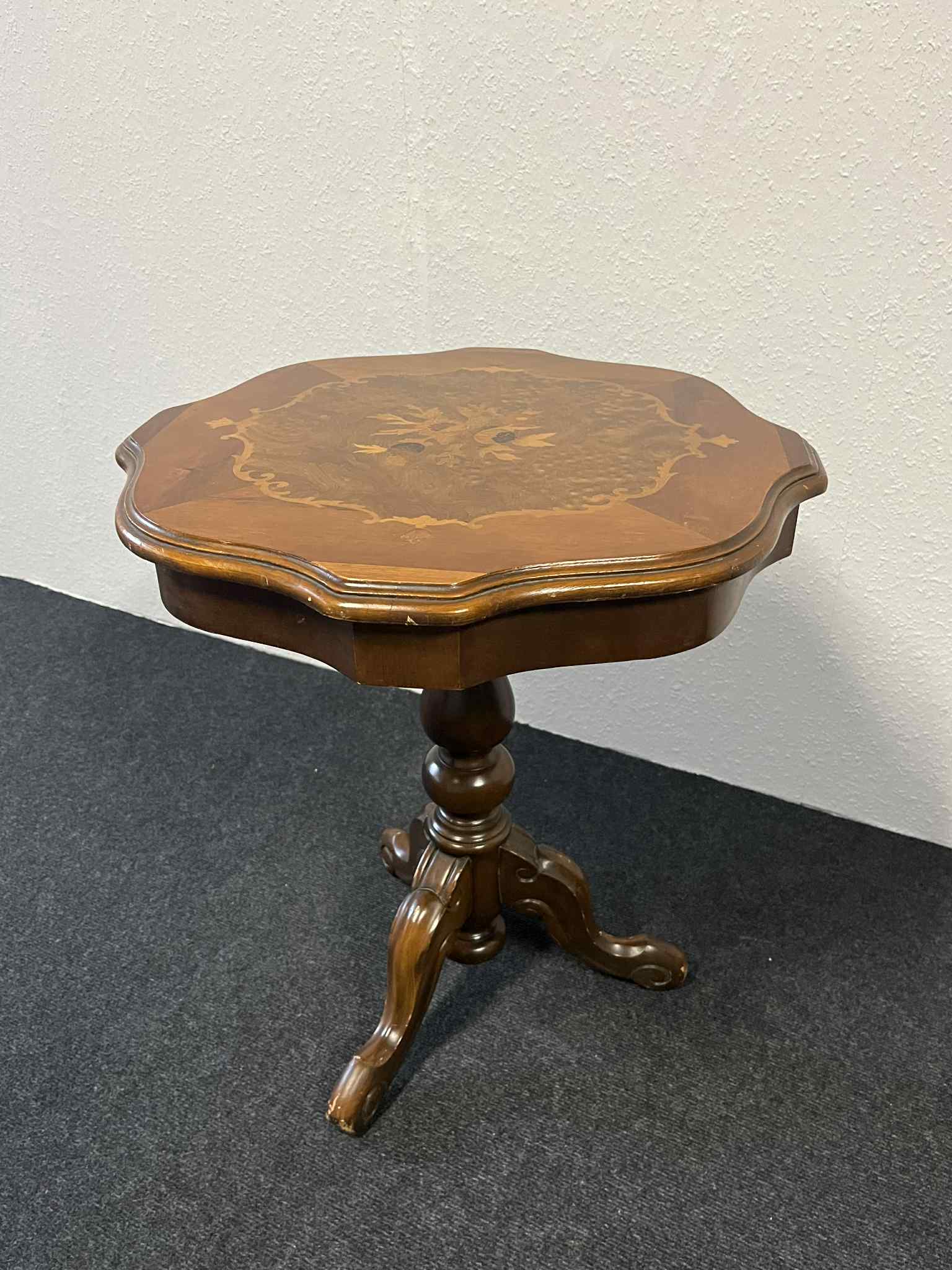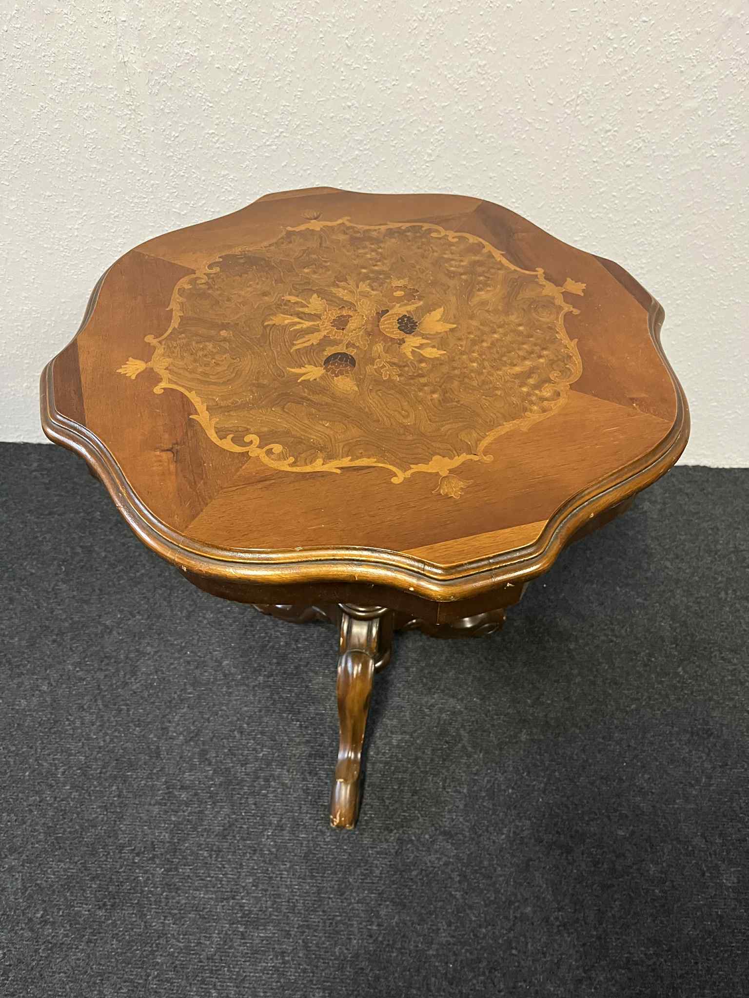Antiker Beistelltisch, Echtholz, mit floralen Intarsien