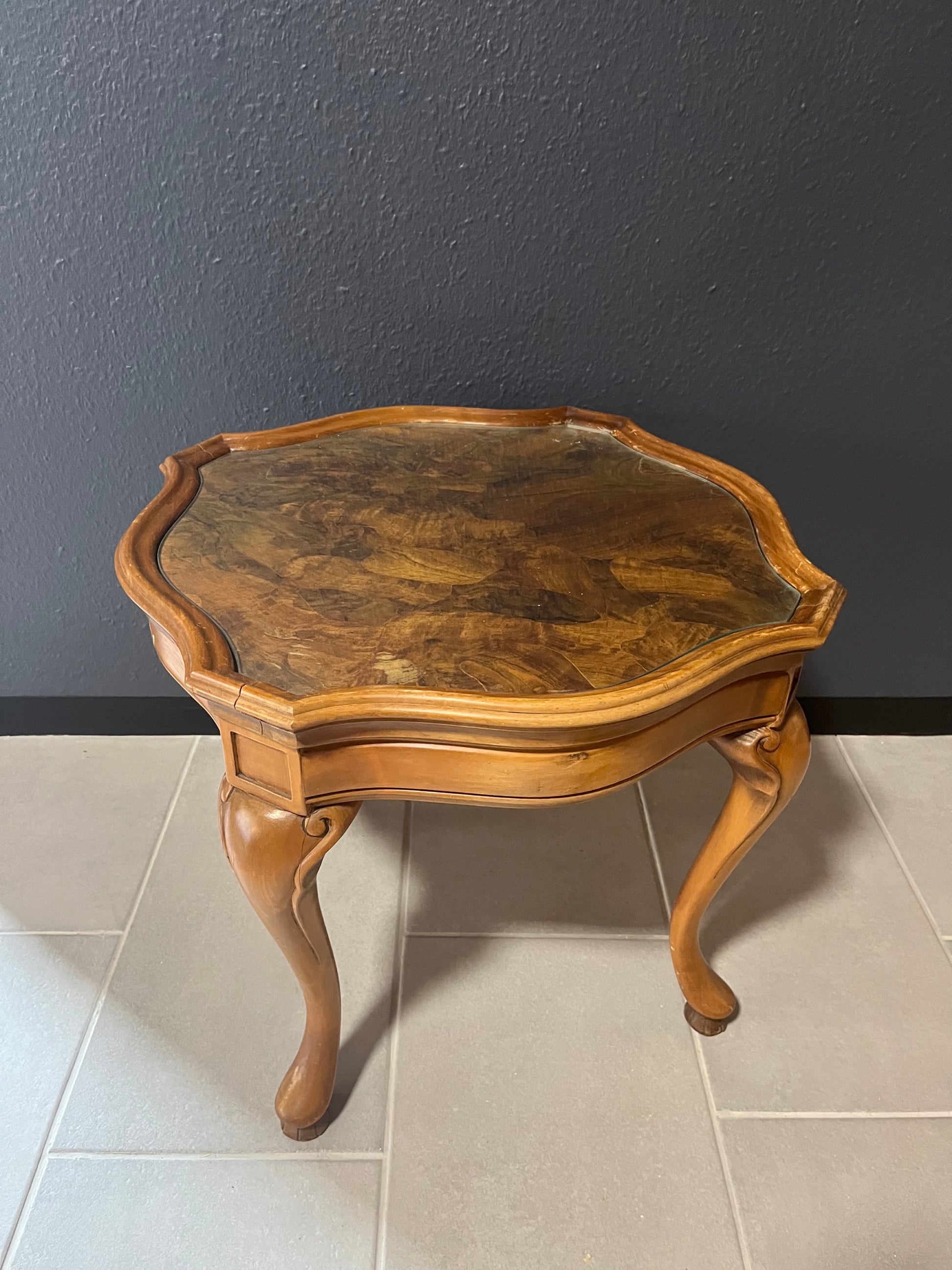 Beistelltisch im Queen-Anne-Stil – Furnierter Holzrahmen