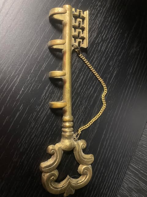 Großer Wanddeko-Schlüssel aus massivem Messing, stylisch und ideal als Blickfang im Vintage-Stil.
