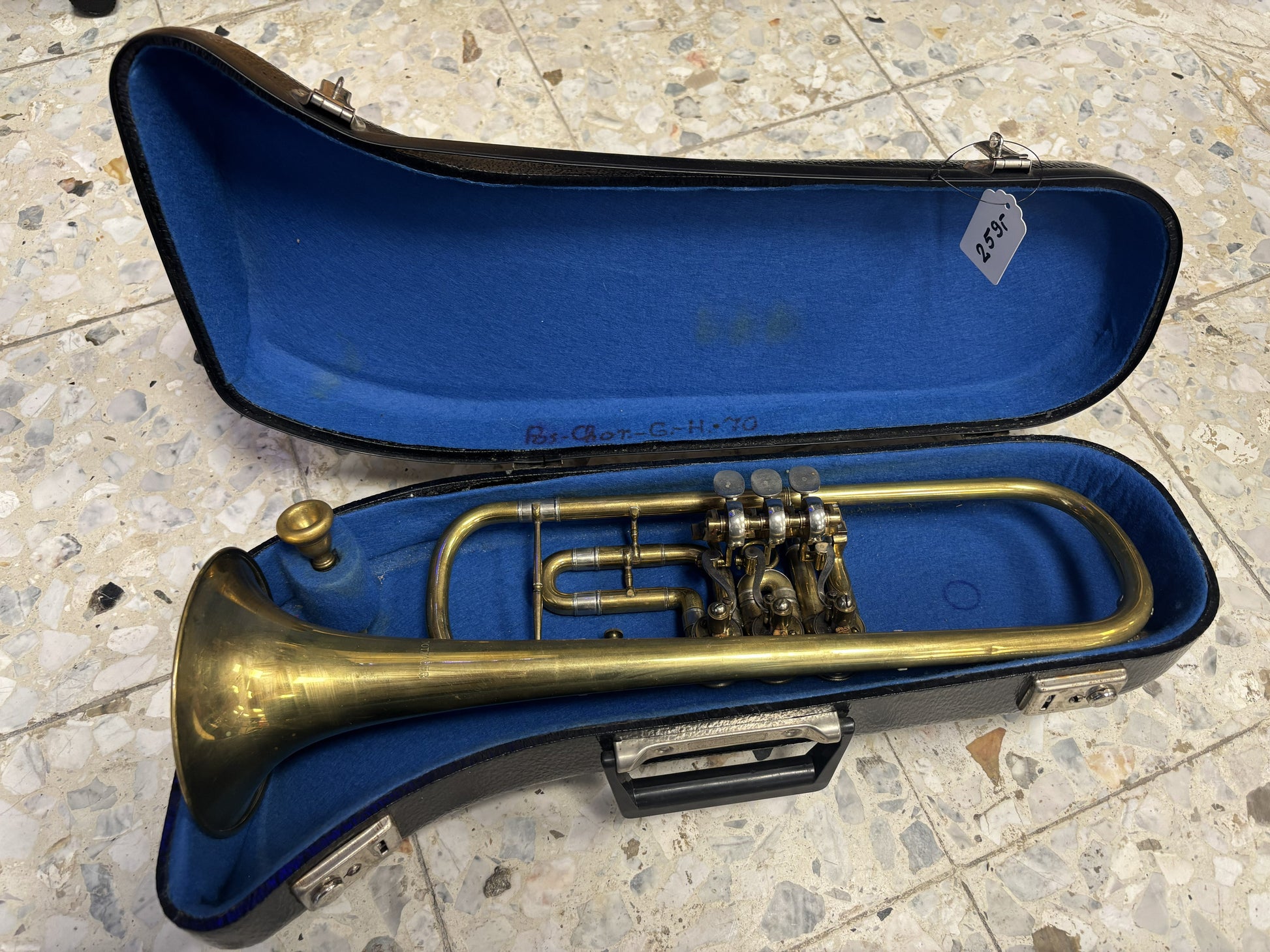Die Dotzauer Trompete ist ein traditionelles deutsches Modell mit Drehventilen, bekannt für ihren weichen, vollen Klang und präzise Ansprache.
