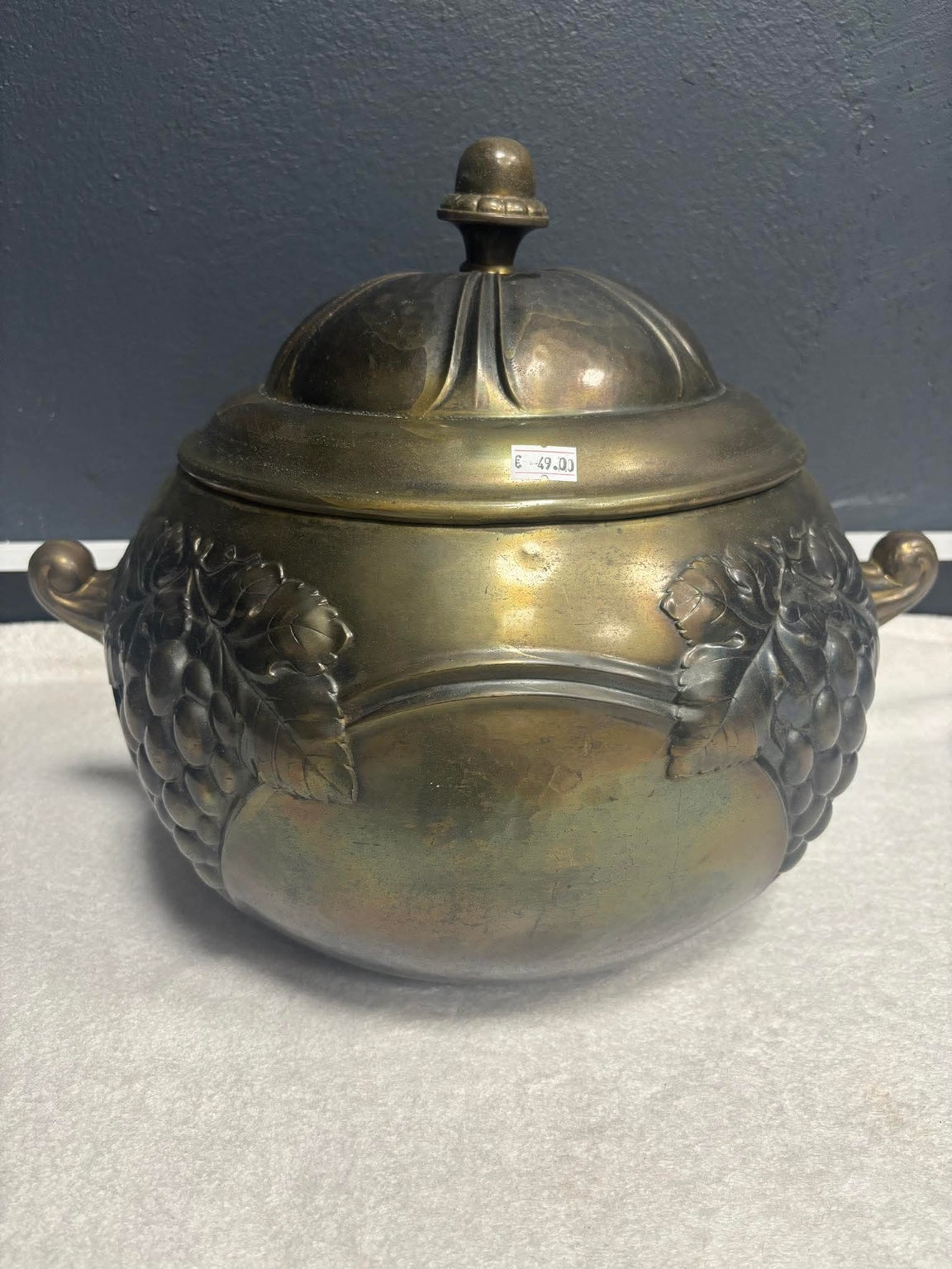 Messingdose mit Deckel und Traubenrelief
