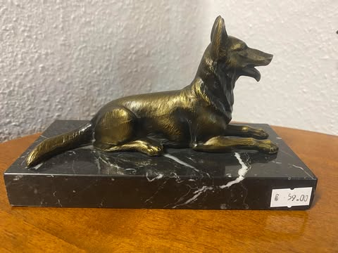 Hundeskulptur auf Marmorsockel