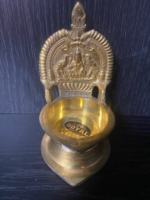 Traditionelle indische Öllampe aus massivem Messing, reich verziert mit figürlichen Motiven. Ideal für Dekoration oder spirituelle Rituale.