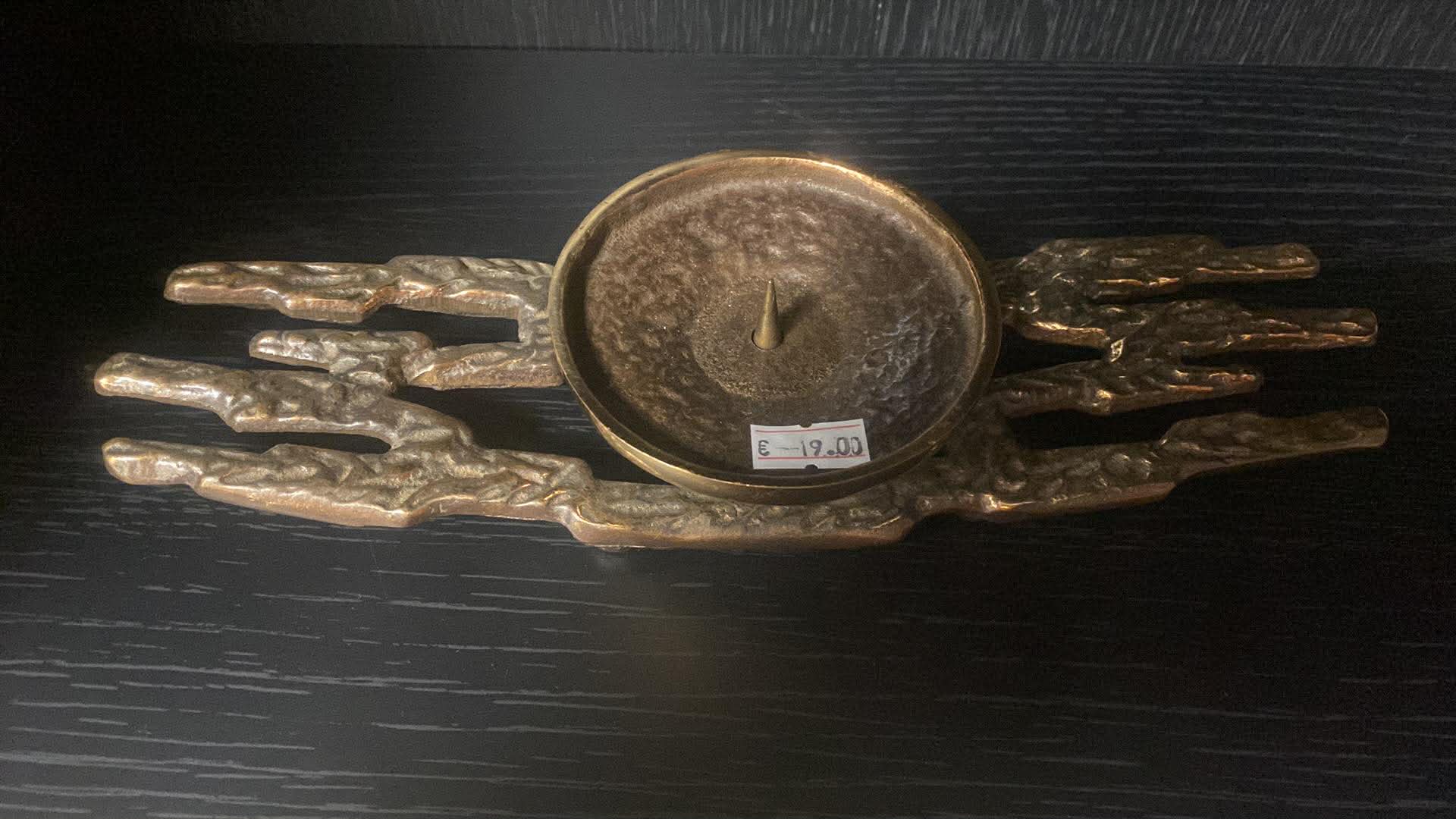 Außergewöhnlicher Kerzenhalter aus Messing in Form von stilisierten Händen. Sehr dekoratives Stück, ideal für Kerzenlicht mit besonderem Akzent.