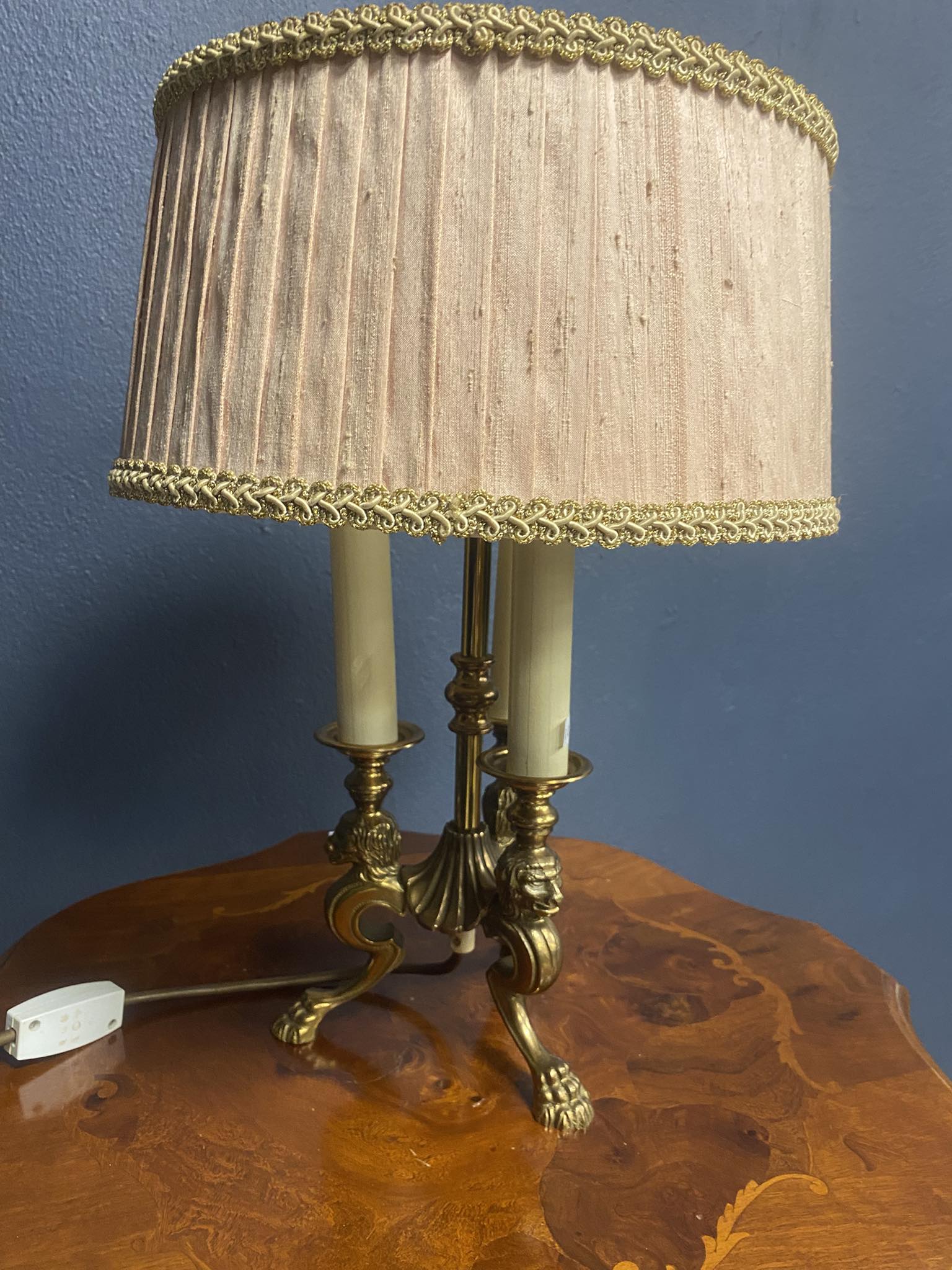 Klassische Tischlampe mit Samtstoffschirm – mehrflammig