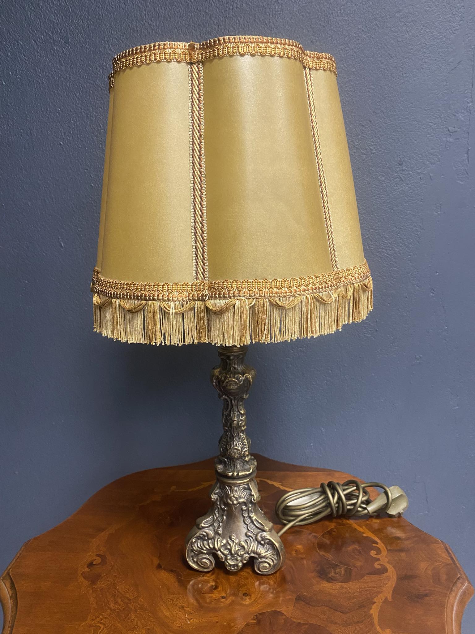 Klassische Tischlampe mit Stoffschirm und Fransen