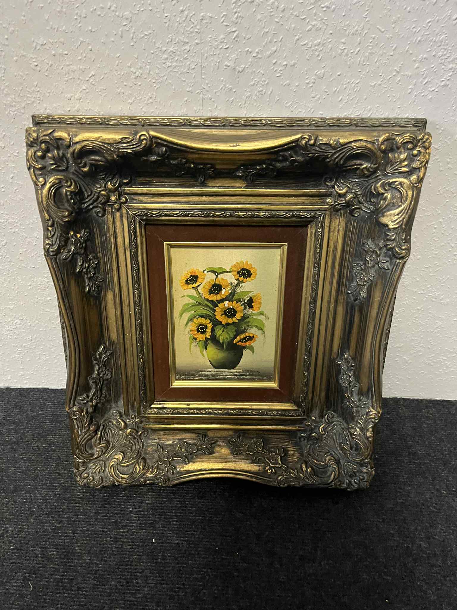 Stillleben mit Sonnenblumen – Öl auf Leinwand, Barockrahmen