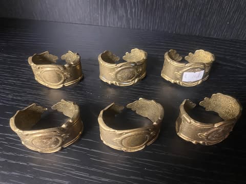 Set aus sechs dekorativen Serviettenringen aus Messing mit klasycznym ornamentem.
