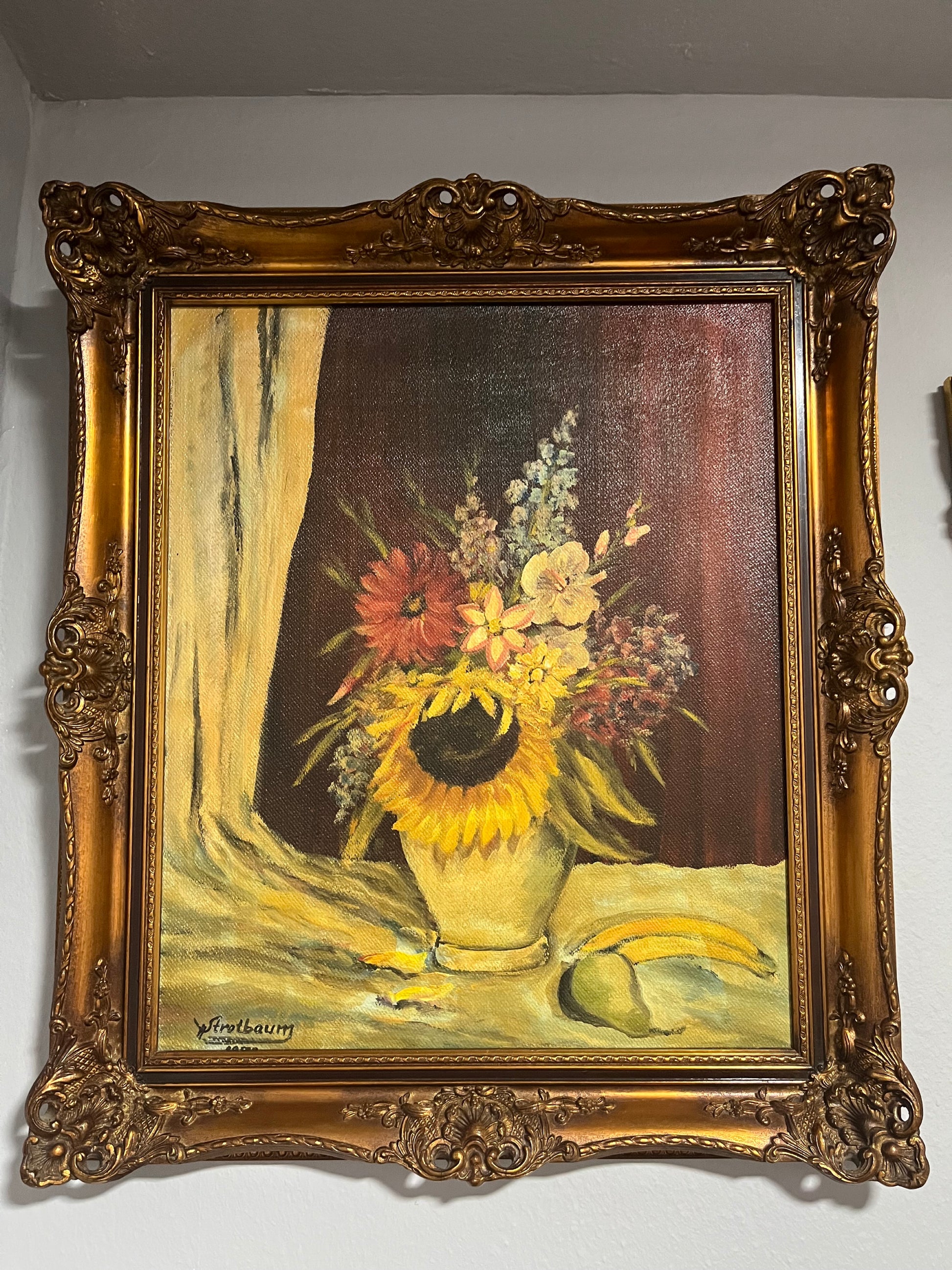 Stillleben mit Sonnenblumen – Öl auf Leinwand, Barockrahmen