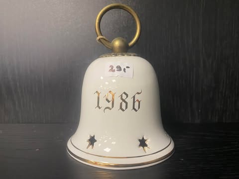 Dekoglocke mit goldenen Details und Jahreszahl 1986, ideal als Sammlerstück.