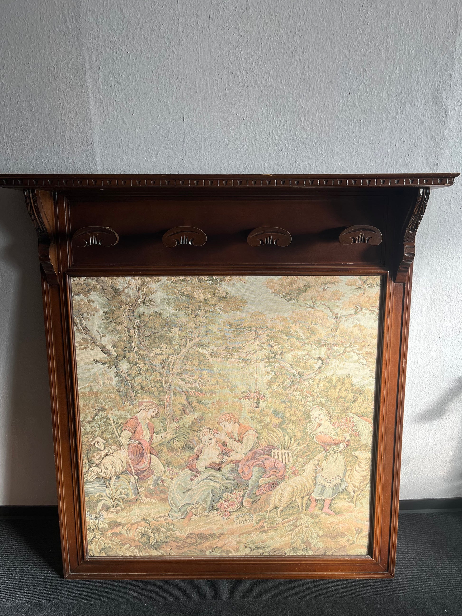 Wandteppich im Holzrahmen mit Garderobenhaken – Rokoko-Szene